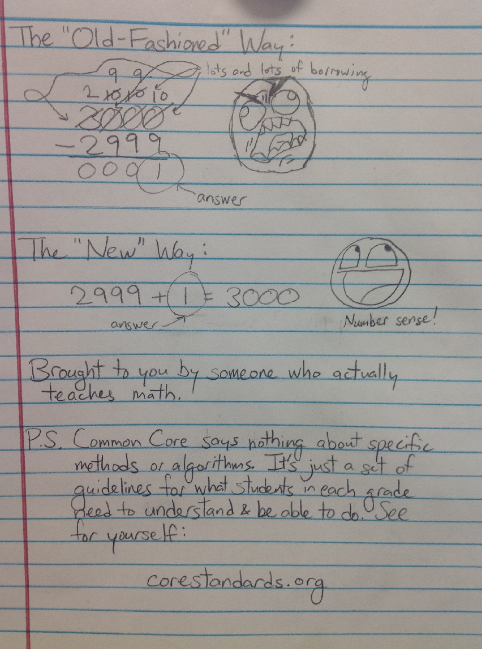 If you are on Facebook, you have seen this (or one similar to it), usually followed by stating that a certain set of standards are evil and we should be teaching the kids drill and kill through the “right way”. So let’s clear the air (Or let me fill it with hot air and you can comment below. Bring it on!).